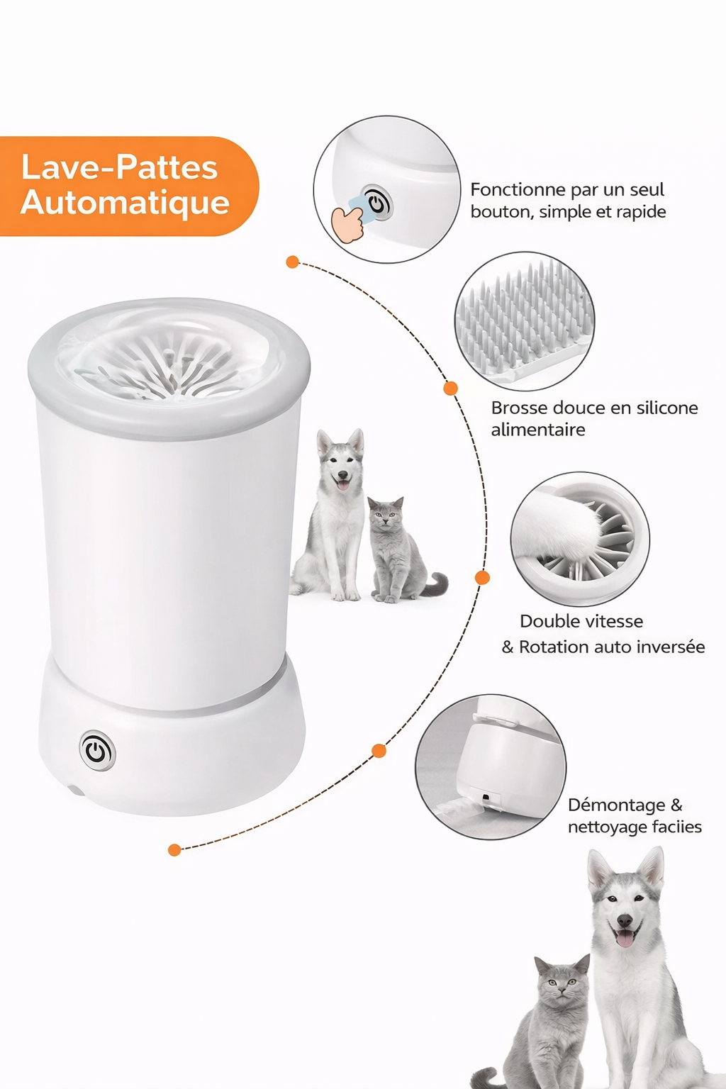 Fini les traces de boue et de saleté dans la maison : nettoie les pattes de ton chien en quelques secondes grâce à un système automatique, doux et silencieux.